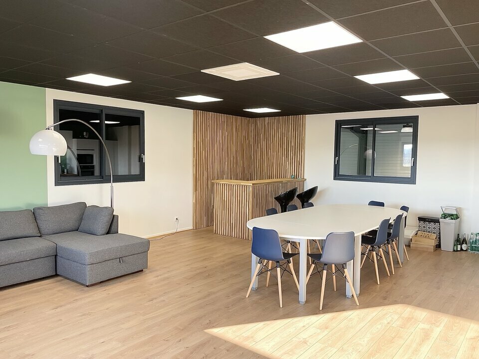 - Étage R+1 : 126 m² comprenant trois bureaux, sanitaires, salle d'eau et salle de réunion de 50 m².