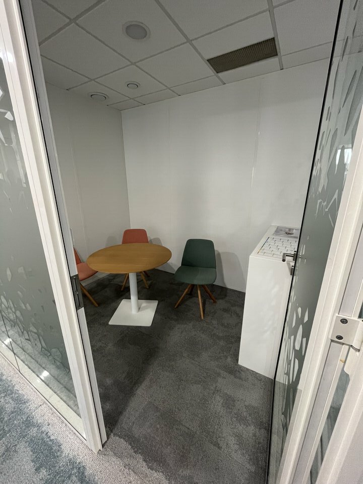 bureaux en partie cloisonnés (cloisons vitrées) + open-space et salle de réunion