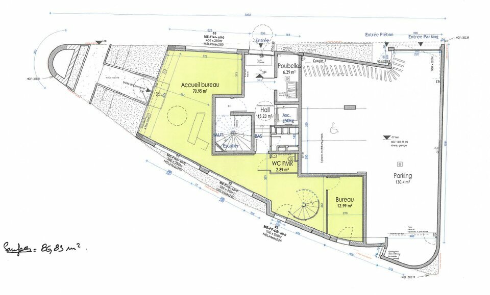 2 places de stationnement sont inclues dans la location pour le 232 m² et 8 supplémentaires peuvent être louées en plus (80€ HT/mois la place)